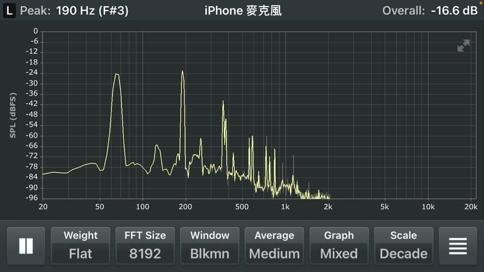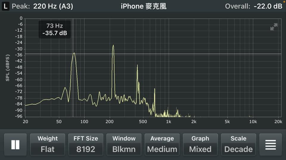 比如,我自己手上的一顆缽就有明顯的3個重要的頻率: 73Hz、76Hz、220Hz。