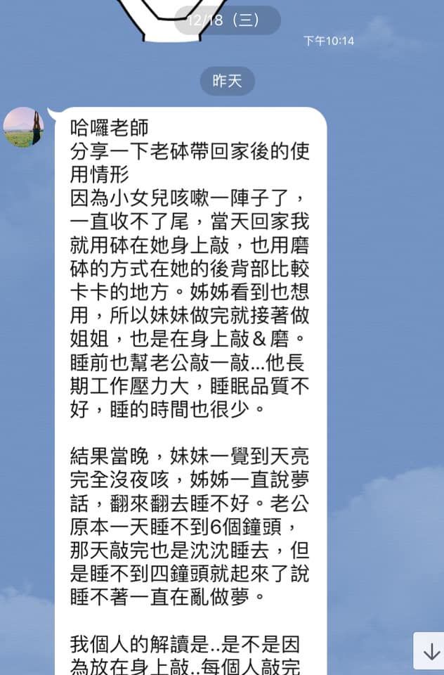 老公原本一天睡不到6個鐘頭,那天敲完也是沈沈睡去,但是睡不到四鐘頭就起來了說睡不著一直在亂做夢。