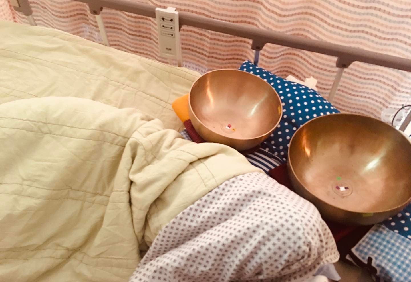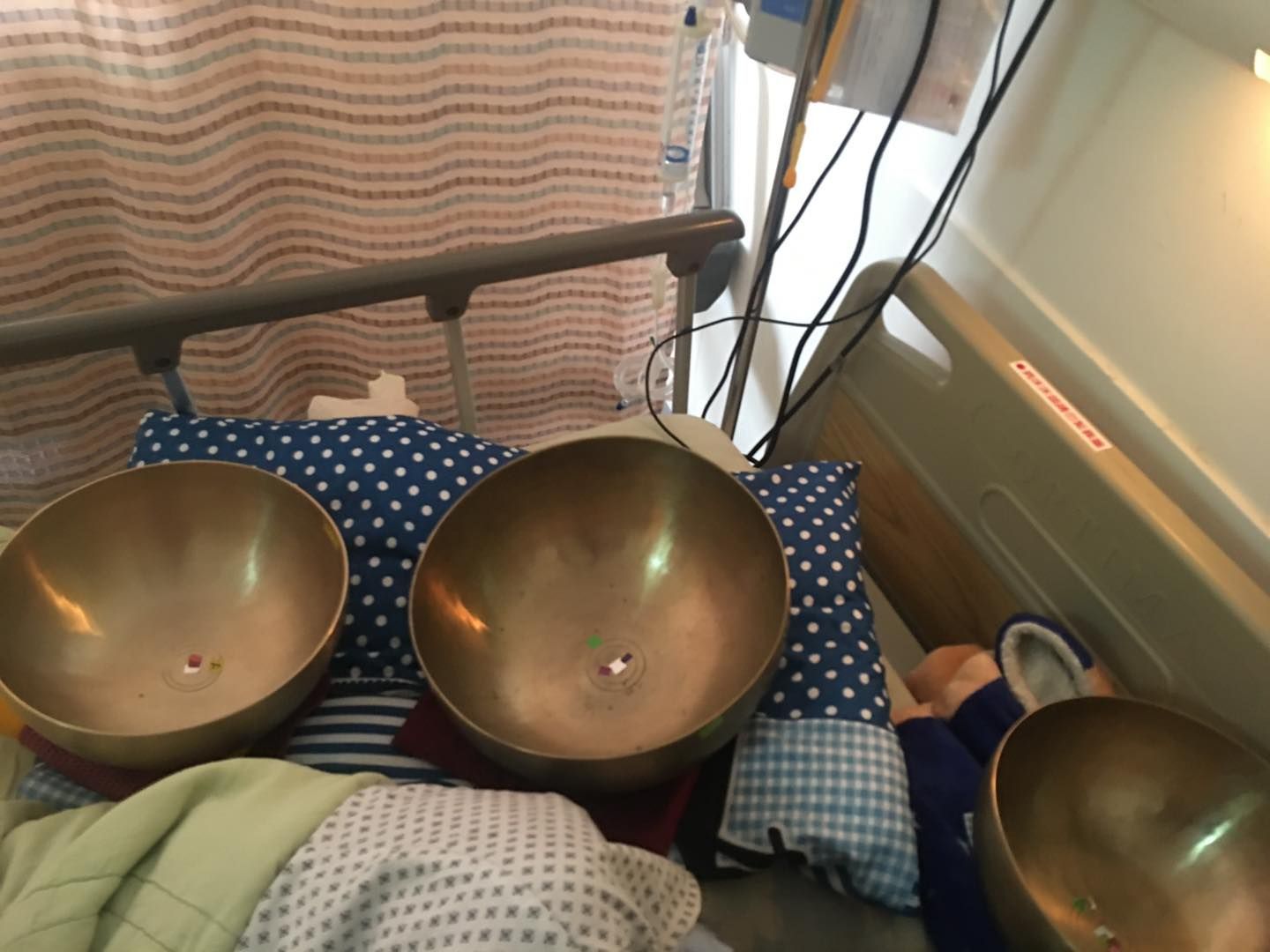 在醫院內敲缽我感到非常自在,也彷彿早就熟悉不過的場景,點滴串起曾經的經歷: 創世基金會在病院內床邊位植物人敲缽、醫院的味道、靈魂選擇體驗身心病痛的勇敢,娑婆世界裡的生老病死。